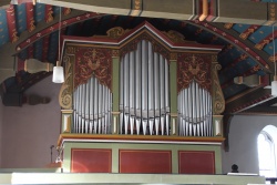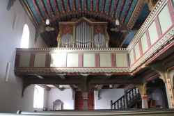 | Umbauten: | 2008 - Im Rahmen einer Reinigung wird die II. Manual bis dahin vorhandene Quinte 2 2/3' durch eine Rohrflöte 4' aus Werkstattbestand ersetzt. Die genaue Herkunft der Pfeifen konnte nicht ermittelt werden. |