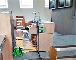 Prinzipal 8' Gemshorn 8' Oktave 4' Koppelflöte 4' Superoktave 2' Mixtur 4f 11/3' Cornett 5f 8' Trompete 8' Tremulant |