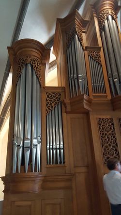 Datei:Bad Aussee ,Kirche, Orgel.jpg Prospekt Rieger-Orgel |