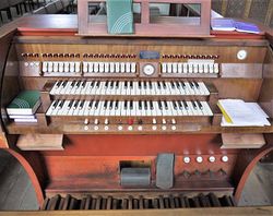 | − | |SPIELHILFEN = | + | |SPIELHILFEN = II/I, I/P, II/P; 2 freie Kombinationen (Handregister und Fußtritte); Tutti (Fußtritt); Crescendowalze |