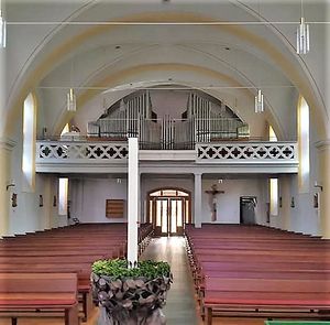 Suavial 8' Rohrflöte 8' Principal 4' Nachthorn 4' Gemshorn 2' Spitzquinte 11/3' Sesquialter 2f 22/3' Scharffzymbel 4f Schalmey 8' |