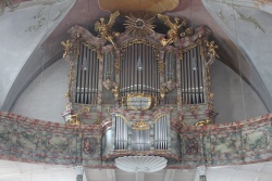 | Gehäuse: | Das Gehäuse wurde von Joseph Wirth 1786 für die Karmelitenkirche in Augsburg (Deutschland) errichtet. Mit der Schließung des Klosters (eine Jahreszahl konnte hierzu noch nicht eruiert werden) kamm die Orgel nach Breitenwang in Tirol. Das alte Orgelwerk ging im Laufe der Jahre verloren. |