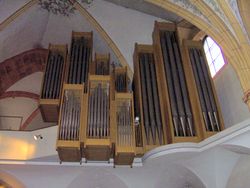| Spielhilfen, Koppeln: | I/II, III/II, III/I, I/P, II/P, III/P, 6 mechanische Setzerkombinationen |