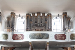 Principal 8' Hohlflöte 8' Salicional 8' Schwebung 8' Weitprincipal 4' Koppelflöte 4' Nasat 22/3' Blockflöte 2' Terz 13/5' Scharf 4f 1' Dulcian 16' Oboe 8' Helltrompete 4' Tremulant |