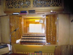| Spielhilfen, Koppeln: | II/I, II/I (Sub), II/I (Super), II/II (Sub), I/P, II/P, 2 freie Kombinationen, Piano, Forte, Tutti, Crescendowalze |