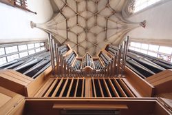 | Geschichte der Orgel: | An der Erarbeitung der Disposition dieser Orgel beteiligt: Prof. Herbert Liedecke, Konrad Mühleisen, Ulrich Wahl und Klaus Schulten.