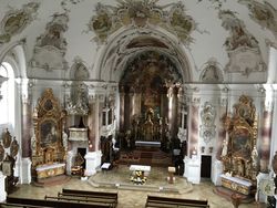Anmerkungen: "Ursprünglich pneumatisch mit romantischer Disposition (1906), wurde die Orgel 1957 auf drei Manuale erweitert, elektrifiziert, mit fahrbarem Spieltisch versehen und dem neobarocken Zeitgeschmack angepasst. Die Gesamtintonation ist erstaunlich mild, aber klangschön. Die Mixturen sind klar, etwas steril, aber ohne Aufdringlichkeit. Die Grundstimmen von Haupt- und Schwellwerk sind in sich dynamisch aufgebaut, jeweils von einem leisen Streicher zu einer mittellauten Flöte und einem kräftigeren Prinzipal. Als eine der letzten Arbeiten der Firma Hindelang im Allgäu wurden 1978 drei Register zur klanglichen Aufhellung ausgetauscht: Scharf 1' im Schwellwerk und im außerhalb des Neurokoko-Gehäuses stehenden III. Manual Superoktav 2' und Cymbel 2/3'. Die Orgel stellt den beachtenswerten Versuch dar, auf dem Fundament von romantischen Registern mit weiten Mensuren eine barocke Klanglichkeit aufzubauen." (vgl. Kohler 2007)