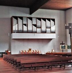 Rohrflöte 8' Oktav 4' Schweizerpfeife 4'[1] Nasat 22/3' Offenflöte 2' Mixtur 5-6f 11/3' Trompete 8' |