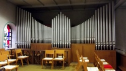 | Spielhilfen, Koppeln: | II/I, III/I, III/II, I/P, II/P, III/P, 2 freie Kombinationen, 2 freie automatische Pedalkombinationen (jeweils 1 für II und III), Tutti, Zungengeneralabsteller |