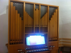 Anmerkungen: Die Orgel ist hinter der Hochaltar auf der Empore. Vom Kirchenraum nicht ersichtlich.