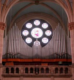 Prinzipalbaß 16' Subbaß 16' Zartbaß 16' (Transm.) Streichbaß 16' Großquinte 102/3' Oktavbaß 8' Gedackt 8' Choralbaß 4' Holzflöte 4' Pedalmixtur 4f 4' Posaune 16' Sordun 16' Fagott 8' |