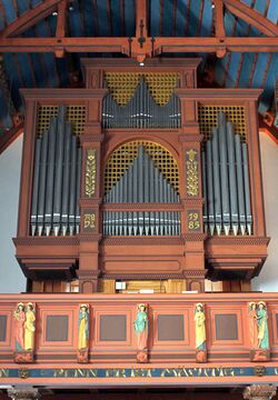 Principal 8' Holzgedeckt 8' Octave 4' Rohrflöte 4' Octave 2' Sesquialter 2f Mixtur 4-5f 11/3' Trompete 8' |