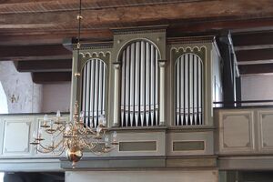 Gehäuse: Das Gehäuse des Vorgängerinstruments wurde wiederverwendet, es stammt aus dem Jahr 1844 und wurde von Marcussen & Søn errichtet. Dieses alte Instrument wurde von Frau Margarethe Stuhr gestiftet, die Müllerin in Stuhr war. Hiervon kündet noch heute ein an der Nordwand unter der Empore angebrachtes Bild der Stifterin.