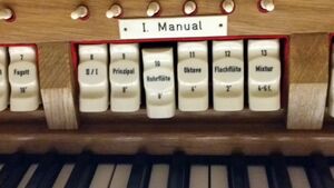 | Spielhilfen, Koppeln: | Normalkoppeln (als Registerwippe und als Tritt), 1 Freikombination, Einzelabsteller Zungen ab, Auslöser, Tutti |