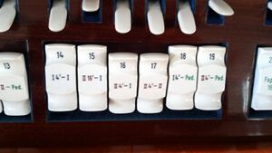 | Spielhilfen, Koppeln: | Koppeln II-I, I-P, II-P, I 4'-I, II16'-I, II 4'-I, II4'-II, I 4'-P, II 4'-P