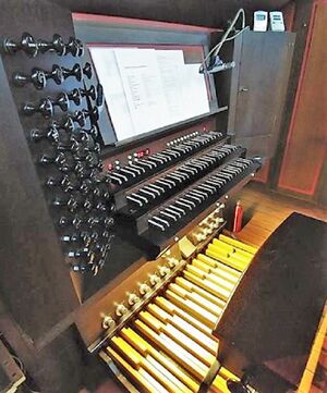 | Spielhilfen, Koppeln: | I/II, III/II, III/I, I/P, II/P, III/P, Setzeranlage mit 32 Kombinationen, Zimbelstern und Röhrenglocken sind für den Einbau vorbereitet |