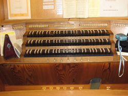 | Geschichte der Orgel: | 1964 durch Alfred Führer erbaut. 2001 Dispositionsänderungen durch Jäger & Brommer. 2012 Ersatz der Setzeranlage von 1964 (Fünf Setzer) mit einer neuen Setzeranlage von Johannes Klais Orgelbau. |