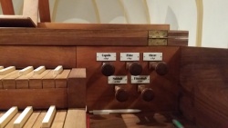 | Spielhilfen, Koppeln: | Koppeln II/I, I/P, II/P als Tritte zum Einhaken |