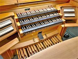 | Umbauten: | 2019 durch die Firma Seifert: Umintonation insbesondere der quintadigen 16'; Austausch zweier Register im Schwellwerk; Aufrücken der Mensuren der Register Koppelflöte 8', Salicet 8' und Principal 4' im Schwellwerk; Einbau einer Setzeranlage anstelle der freien Kombinationen. |
