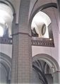 Bemerkung: Bis auf die beiden Chorwerke und den Spieltisch (links und rechts oberhalb der Arkaden des Westeinganges) befindet sich die komplette Orgel auf der seitlichen Nordempore. Der originale Spieltisch weist die für Feith typische, über die gesamte Breite verlaufende Registerstaffel auf.