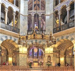 Die Hauptorgel links und rechts "versteckt" auf dem Umgang der Pfalzkapelle