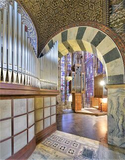 1. Die ursprüngliche Klais-Orgel von 1939 besaß tatsächlich kein Schwellwerk, wie ein Spieltischfoto in der unten angegebenen Festschrift belegt. Im Fußraum ist neben den Pistons lediglich eine Crescendowalze vorhanden.