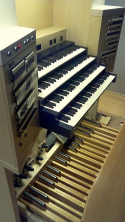 | Manuale: | 4 Manuale, Tonumfang: C-a3, Superoktavkoppeln im III. und IV. Manual ausgebaut bis a4 |