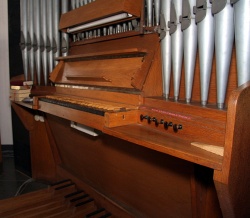 | Geschichte der Orgel: | Die Orgel ist seit längerem defekt und wird nicht mehr genutzt. Für die Gottesdienstbegleitung wurde ein elektronisches Instrument aufgestellt. |