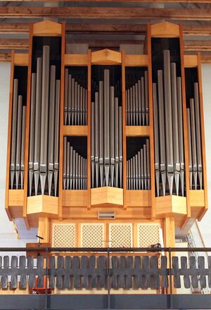 Bordun 16' Prinzipal 8' Rohrgedackt 8' Oktave 4' Gemshorn 4' Flageolett 2' Mixtur 4f 2' Zymbel 2f 1/3' Cornett 2-4f Trompete 8' Tremulant |