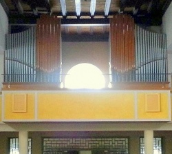 | Geschichte der Orgel: | Erster Teilausbau II/P ca. 12 Register vermutlich um 1941 durch Roethinger für die Notkirche im Ort. Beim Umzug in die neue Kirche wurde aus den Teilen von Späth das heutige Werk erbaut. |