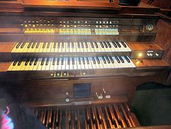 | Spielhilfen, Koppeln: | II/I, II/I (Sub), I/P, II/P, 2 freie Kombinationen, Tutti, Crescendowalze, Zungeneinzelabsateller, Zimbelstern, Handregister, Auslöser |