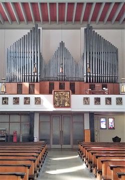 | Spielhilfen, Koppeln: | II/I, III/I, III/II, I/P, II/P, III/P, 2 freie Kombinationen, Tutti, Zungeneinzelabsteller |