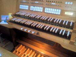 | Spielhilfen, Koppeln: | II/I, I/P, II/P, 2 freie Kombinationen, Tutti |