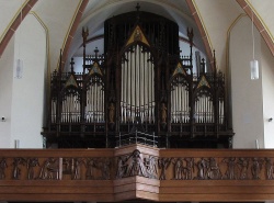 Umbauten: 1933 gravierender Umbau durch Späth im Sinne des Neobarock, 1988, 1994 Umabau durch Hugo Mayer Orgelbau mit Entfernung der stark neobarocken Stimmen, 2006 Elektrifizierung durch Mayer