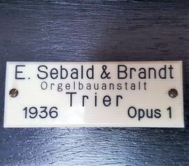 Version vom 24. Juni 2018, 15:52 Uhr von Cmcmcm1 (Diskussion | Beiträge) ({{Dateiinfo |Beschreibung = Sebald-Orgel in Büdlich |Datum = 2018-06 |Autor = Cmcmcm1 |Quelle = Eigenes Werk |Lizenz = }} Orgelbilder / Firmenschilder)