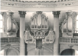 Principal 8' Hohlflöte 8' Octave 4' Spitzflöte 4' Quinte 2⅔' Octave 2' Mixtur III 1⅓' Zimbel II Cornett V Trompete 8' |