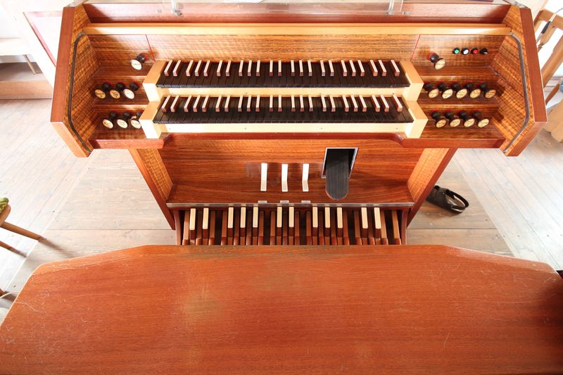 | Beschreibung | Spieltisch der Schmid-Orgel der kath. Kirche St. Peter und Paul zu Biessenhofen-Ebenhofen |