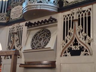 Orgel von 1425-30 in Soest-Ostönnen gotische Propektverzierung mit Rosette und Wimpergen