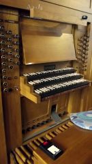| Beschreibung | Spieltisch der Oberlinger-Orgel der Katholischen Kirche Hermeskeil |