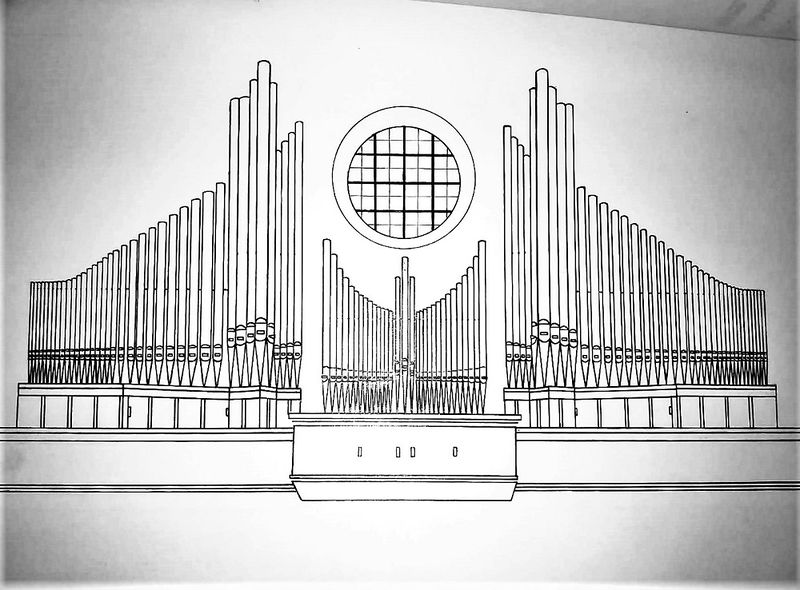 | Beschreibung | Prospektskizze der ehemaligen Nenninger-Orgel in Heilige Familie Harlaching |