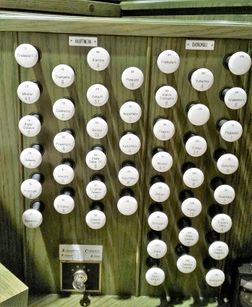 Contra Violone 32' Untersatz 32' Diapason 16' Violone 16' Bourdon 16' Lieblich Gedackt 16' Octave 8' Spitz Geigen 8' Gedackt Flöte 8' Quinte 51/3' Choralbass 4' Flûte ouverte 4' Hohlpfeife 2' Mixtur 4f Scharff 3f Contrabombarde 32' Bombarde 16' Rohrkrummhorn 16' Fagott 8' Trompette 8' Schalmei 4' |