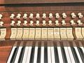 | Spielhilfen, Koppeln: | II/I, II/I (Sub), II/I (Super), II/II (Super), I/P, II/P, 2 freie Kombinationen, 1 freie Pedalkombination (Pedalkombination ebenfalls in den 2 freien Kombinationen enthalten) Piano, Forte, Tutti, Crescendowalze, 16'-Ab, Zungen Ab, Tremolo (Ganze Orgel) |