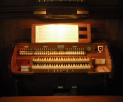 Unteroctavkoppel: II/I Oberoctavkoppeln: II/I, II/II Pianopedal 3 Festkombinationen: Dunkel, Hell, Tutti 1 freie Kombination Auslöser Rollschweller (12 Stufen) Rollschweller ab Schwelltritt für II. Manual |