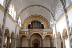 | Anmerkungen: | Bemerkenswert ist die - aus heutiger Sicht bedauerliche- Kehrtwende vom Klangkonzept einer orchestral (man betrachte den lückenlos dynamischen Streicherchor insb. im II. Manual: Geigenprincipal-Salicional-Dolce-Aeoline!), aber bereits "fortschrittlich" (im Hinblick auf beispielsweise den Aliquotenchor und die höherliegenden Stimmen) disponierten romantischen Orgel hin zu einem völlig vom Dogma der Orgelbewegung gekennzeichneten Typus. |