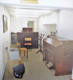 Gamba 8' Vox coelestis 8' Prästant 4' Flöte 4' Nasat 22/3' Oktave 2' Waldflöte 2' Terz 13/5' Scharf 3f Krummhorn 8' Tremulant |