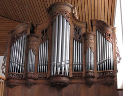 Flöth travers 8' D Gamba 8' Gedackt 8' B/D Octav 4' Flöte 4' Fugara 4' Quint 22/3' Octav 2' Terz 13/5' Mixtur III 1' Trompete 16' B/D Trompete 8' |