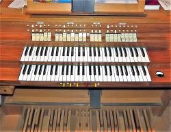 | Spielhilfen, Koppeln: | II/I, I/P, II/P, 2 freie Kombinationen, Tutti, Zungeneinzelabsteller |