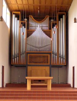 Prinzipal 8' Rohrflöte 8' Oktave 4' Kleingedackt 4' Quinte 22/3' Superoktave 2' Mixtur 6f 11/3' Cymbel 3f 1/2' Trompete 8' |