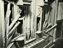 | Discographie: | Letztlich wurde die Orgel 1952 vom Orgelmuseum in Roche für 70 Franken als "Ruine" gekauft und wieder beschränkt spielbar gemacht. Diese Spielbarmachung verstand sich natürlich nicht als eine Arbeit unter denkmalpflegerischen Aspekten. Die Holzpfeifen wurden mit einer Kunstharzfarbe angestrichen und alle undichten Holzteile mit Papier beklebt. Die Farbfassungen des Gehäuses wurden teilweise abgelaugt, die Schäden am Gehäuse nur provisorisch instand gesetzt.