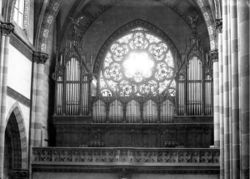 | Geschichte der Orgel: | Die Orgel wurde am 27. Februar 1945 durch einen Luftangriff während des 2. Weltkrieges zerstört. |